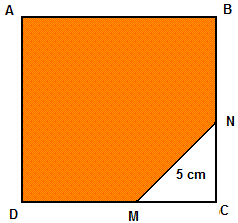 - The size of the perimeter of the square ABCD is equal to 100 cm. The length of the segment MN is equal to 5 cm and the triangle MNC is isosceles. Find the area of the pentagon ABNMD.